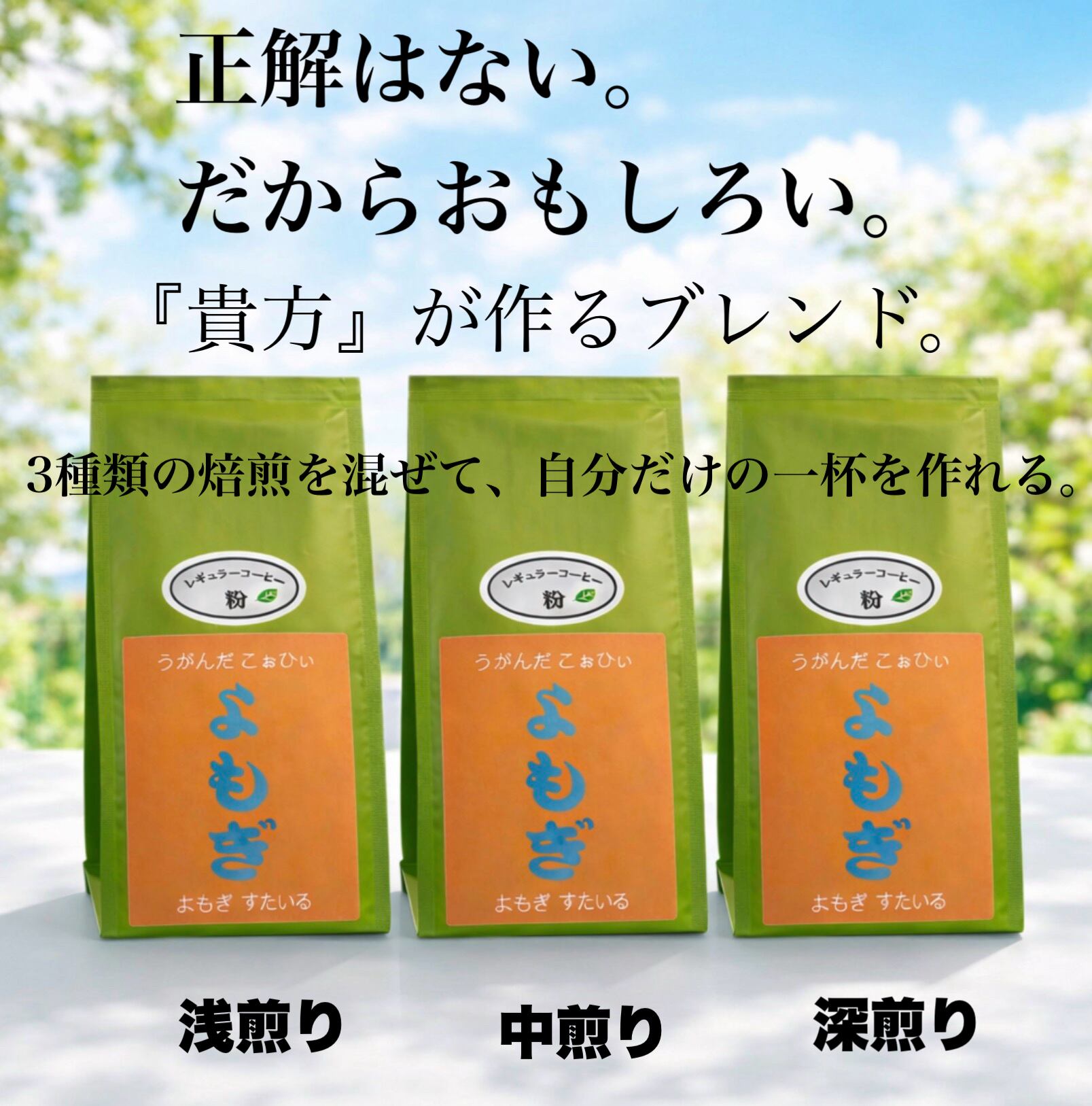 『浅煎り 中煎り 深煎り』の3つの味を自由に組み合わせて、
